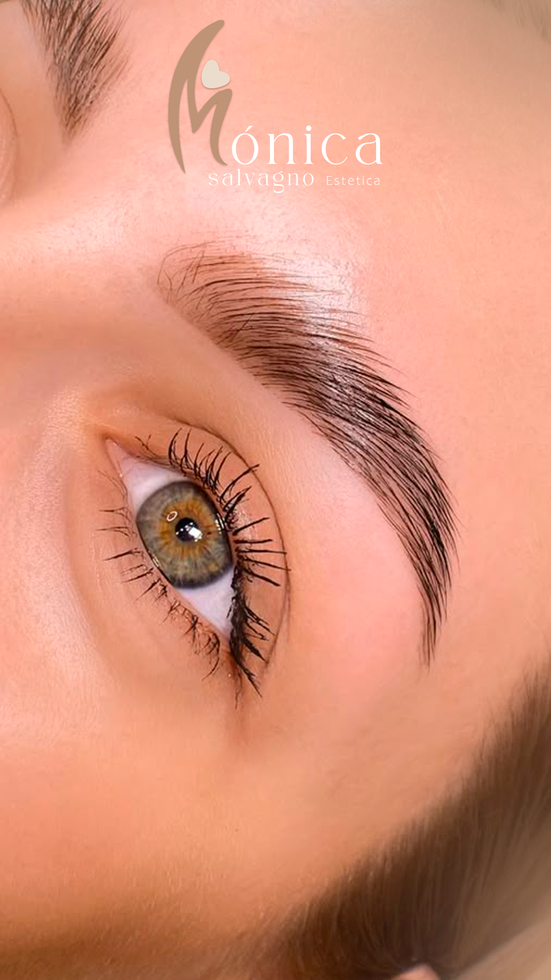 El laminado de cejas es un tratamiento estético que peina, ordena y fija el vello de las cejas, alineándolo en la dirección deseada para lograr un efecto de mayor volumen, definición y forma natural, durante varias semanas.